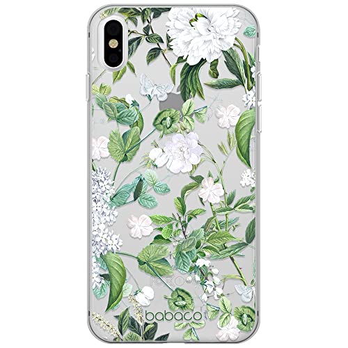 BABACO Funda para teléfono móvil de ERT Group para iPhone X/XS Original y con Licencia Oficial diseño Flowers 034 Adaptada a la Forma del teléfono móvil, parcialmente Transparente