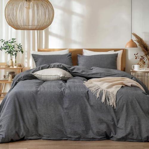 Freyamy - Funda nórdica de algodón, 200 x 200 cm, color gris oscuro liso, juego de cama adolescente adulto, juego de funda nórdica para 2 personas, juego de funda reversible, ropa de cama